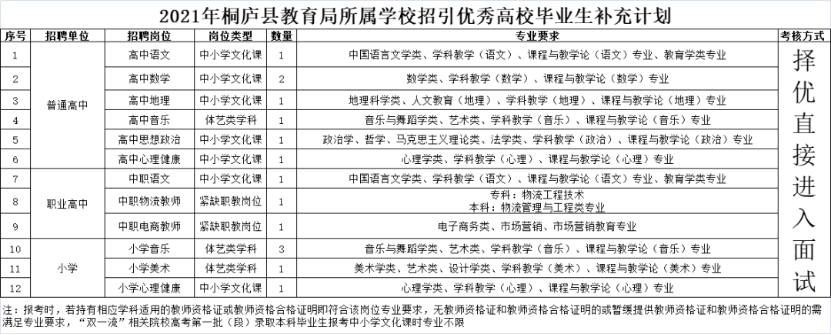 招聘对象及条件、招聘程序、引进政策、报名所需材料仍以《2021年桐庐县教育局所属学校招引优秀高校毕业生公告》(以下简称《原公告》)为准(点击查看)