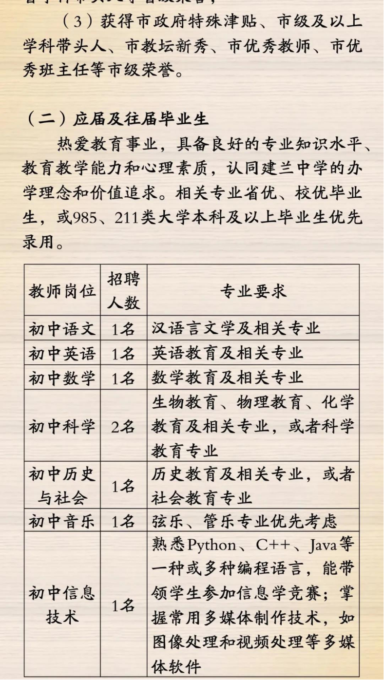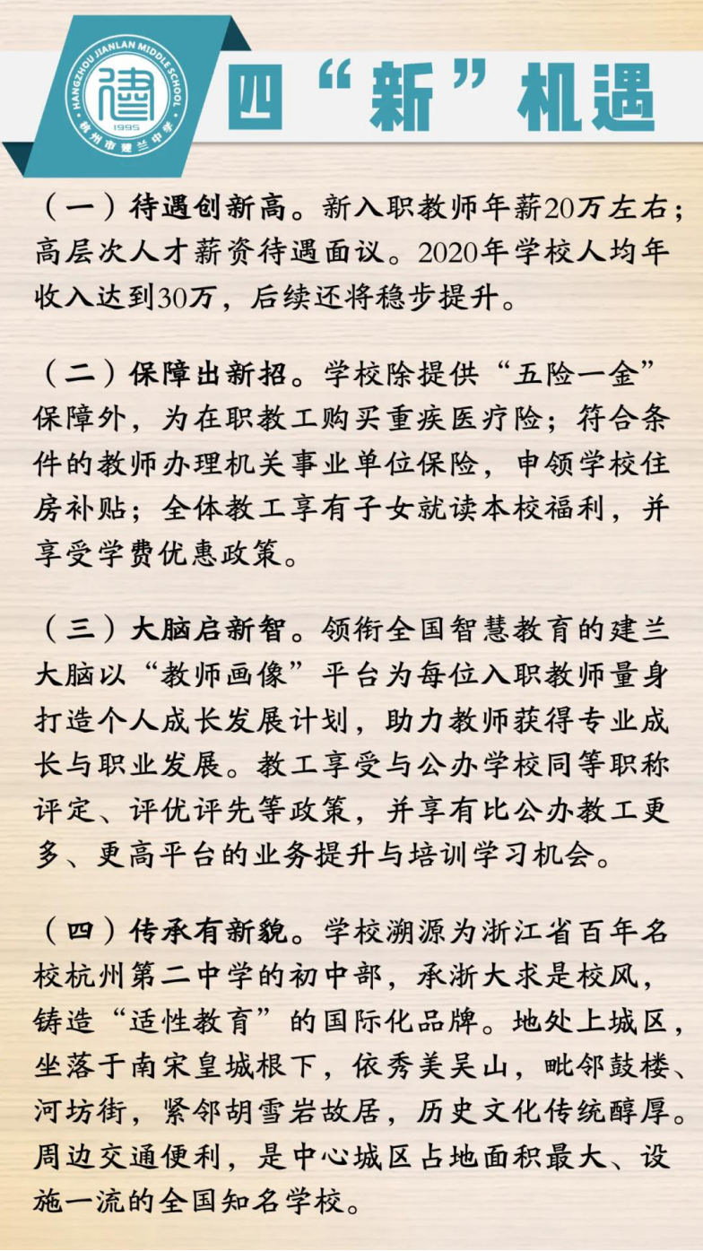 杭州市建兰中学教育集团、华二信达学校高中部招聘若干民办教师