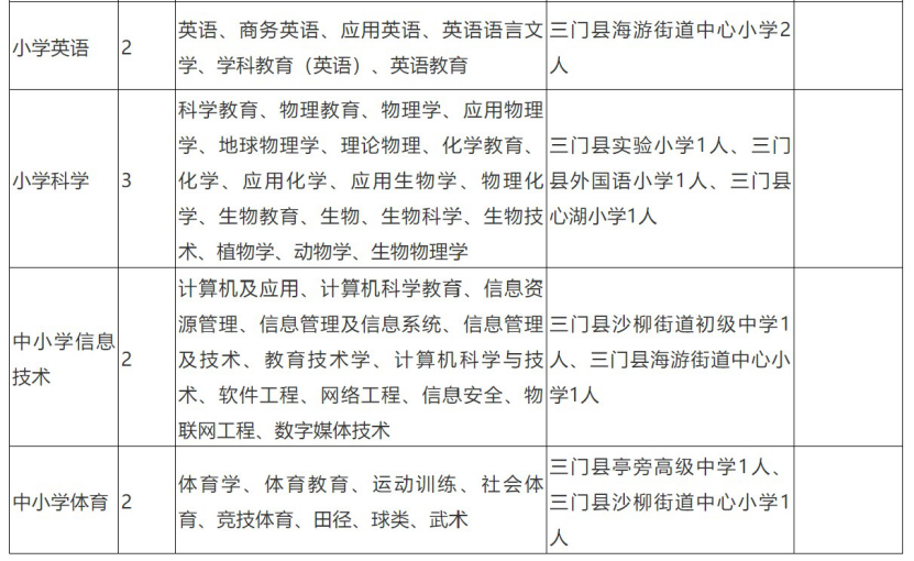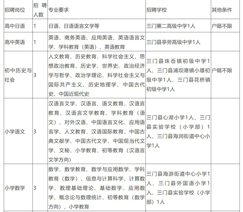 为进一步优化教师队伍结构,提升三门教师队伍整体素质,加快我县教育现代化县建设,促进三门教育可持续发展,根据省、市有关文件精神,结合三门县人民政府办公室专题会议纪要《关于推行教师队伍若干改革制度有关问题专题会议纪要》(〔2017〕22号)精神,现将三门县教育局公开招聘2021年高校应届毕业生的有关事项公告如下: