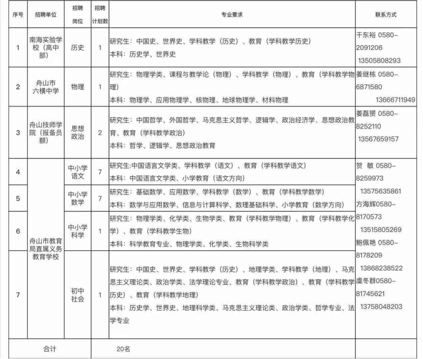 舟山市直属学校招聘20名编制教师(赴永利集团官网)