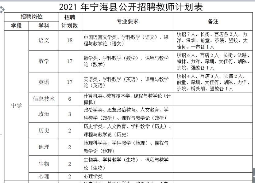 共招聘教师134名。具体招聘岗位、计划数、专业要求等详见《2021年宁海县公开招聘教师计划表》(附件1)。