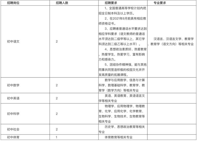 安吉育澜中学教师招聘公告