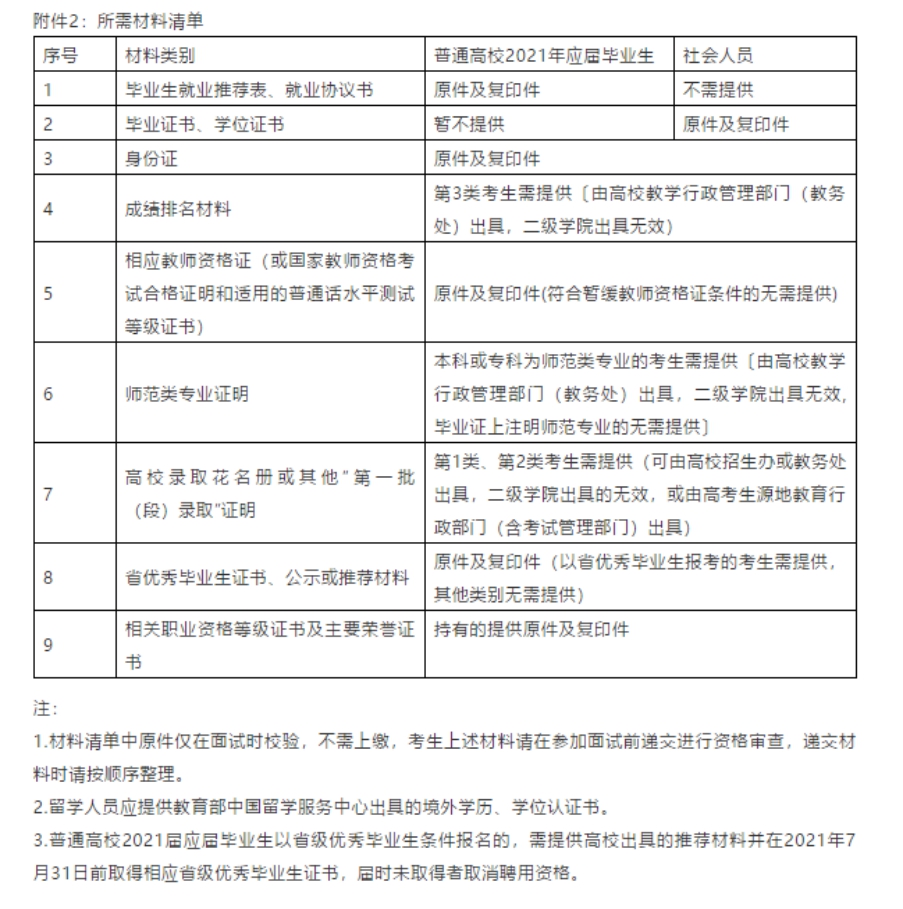 第三类:报名时已取得相应的教师资格合格证明和普通话等级证书的其他社会人员也可参加报考,但需在2021年7月31日前取得相应教师资格证,届时未取得者取消应聘资格。