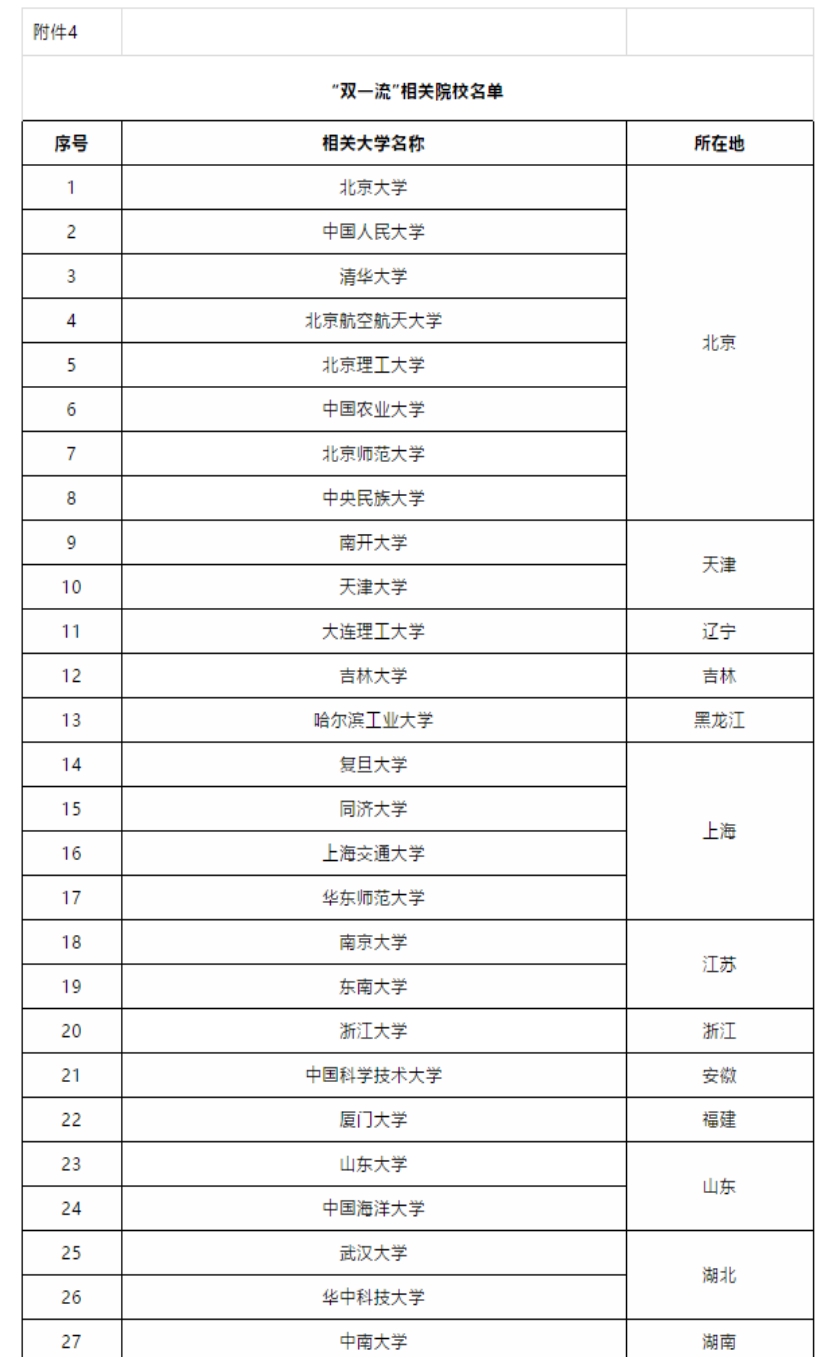 1类:“双一流”相关院校(附件4)高考第一批(段)录取本科毕业生。