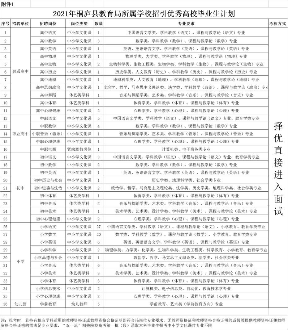 桐庐县教育局所属中小学、幼儿园各科教师若干(详见附件1)。