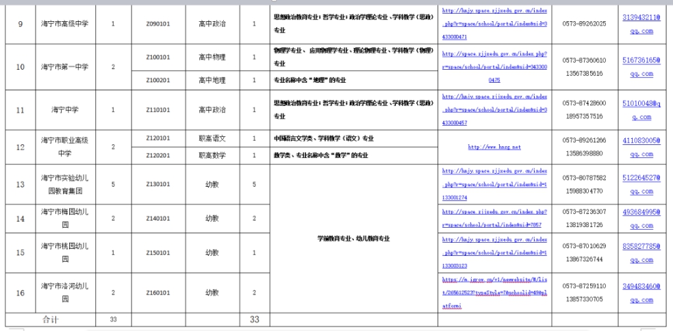 海宁市教育局所属16家事业单位,因学校教育事业发展需要,现公开招聘事业编制教师33名,具体事项公告如下: