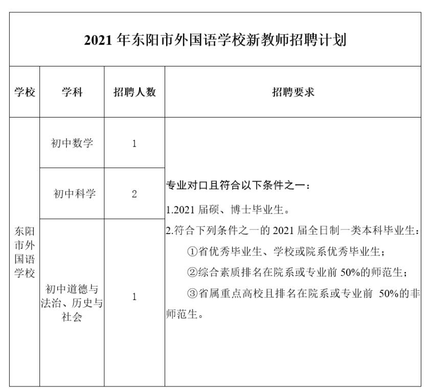 一、招聘单位:东阳中学、东阳市外国语学校。