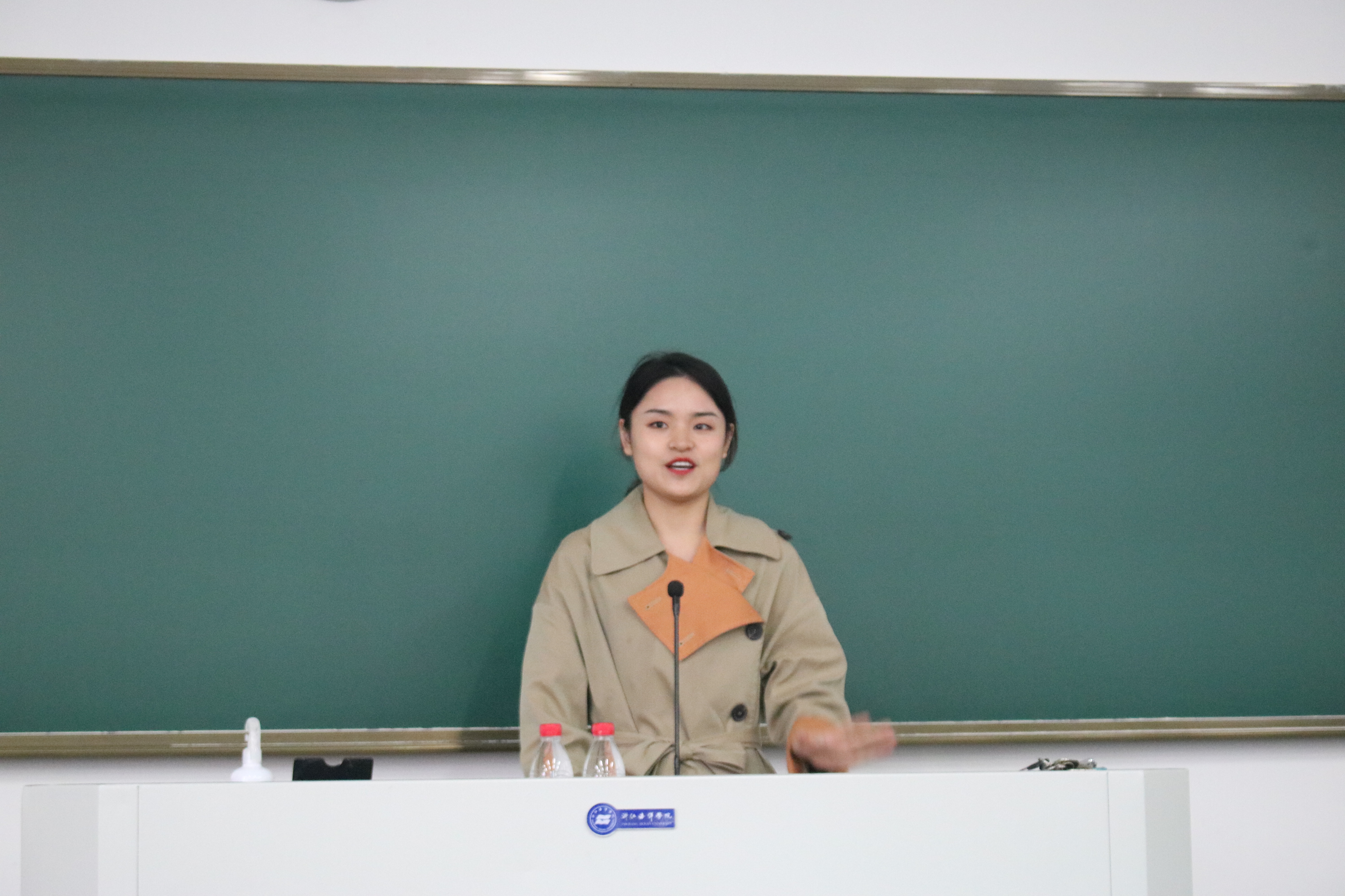 宣讲会伊始,陈桂林老师以播放宣传片的形式,让大家初步了解心田花开学校的工作与生活环境。会上,陈老师从行业前景、企业信息、企业发展待遇以及本次招聘规则四个方面进行详细的介绍,并指出教育培训行业是当下四大朝阳行业之一,教育市场尤其是语文学科市场的的扩大为心田花开学校提供了更广阔的发展平台。接着她着重向大家介绍了“又年轻又成熟的企业”心田花开学校的四大特色(极致教研、师资选培、春晚式课堂、360°课后服务)和四大文化(和谐文化、学习文化、成果文化、道德文化)。在讲到企业的发展与待遇时,陈老师表示在心田花开学校,同学们不仅能得到较好的福利,还能锻炼提升自身能力从而获得个人成就感。结束之际,陈老师补充说明了招聘的规则与要求,并鼓励同学们积极参与招聘。