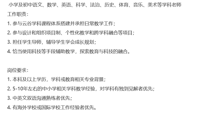 4. 有海外学校或国际学校工作经验者优先;
