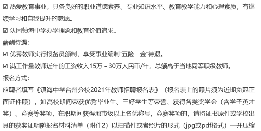 镇海中学台州分校招聘教师