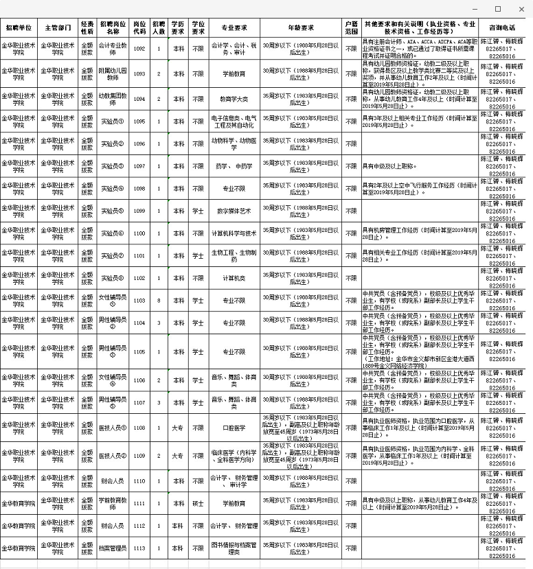 附件:1.《2019年金华职业技术学院、金华教育学院公开招聘岗位条件需求表》