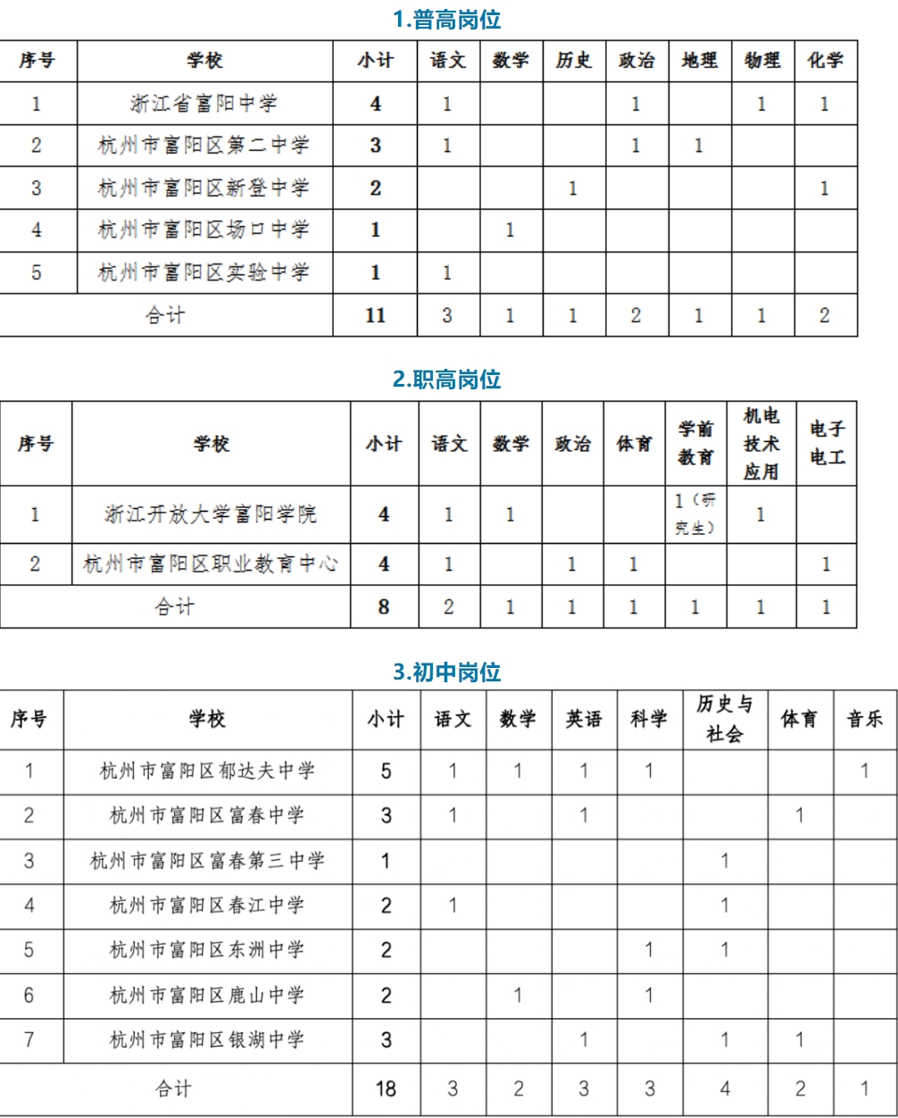2.不符合本次招聘范围和条件的考生,可关注后续富阳区教师招聘公告。
