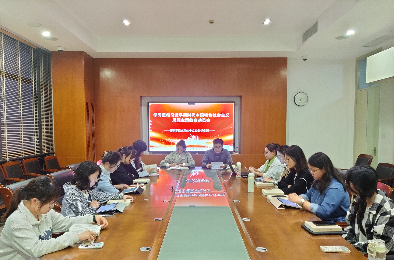 2023年5月6日晚,yl9193永利集团本科生中文专业党支部在长峙校区文理楼418会议室召开学习贯彻习近平新时代中国特色社会主义思想主题教育动员大会,支部书记赵敬创主持会议并做动员讲话,学院党委委员、支部联系人何青晏出席会议并做指导讲话。