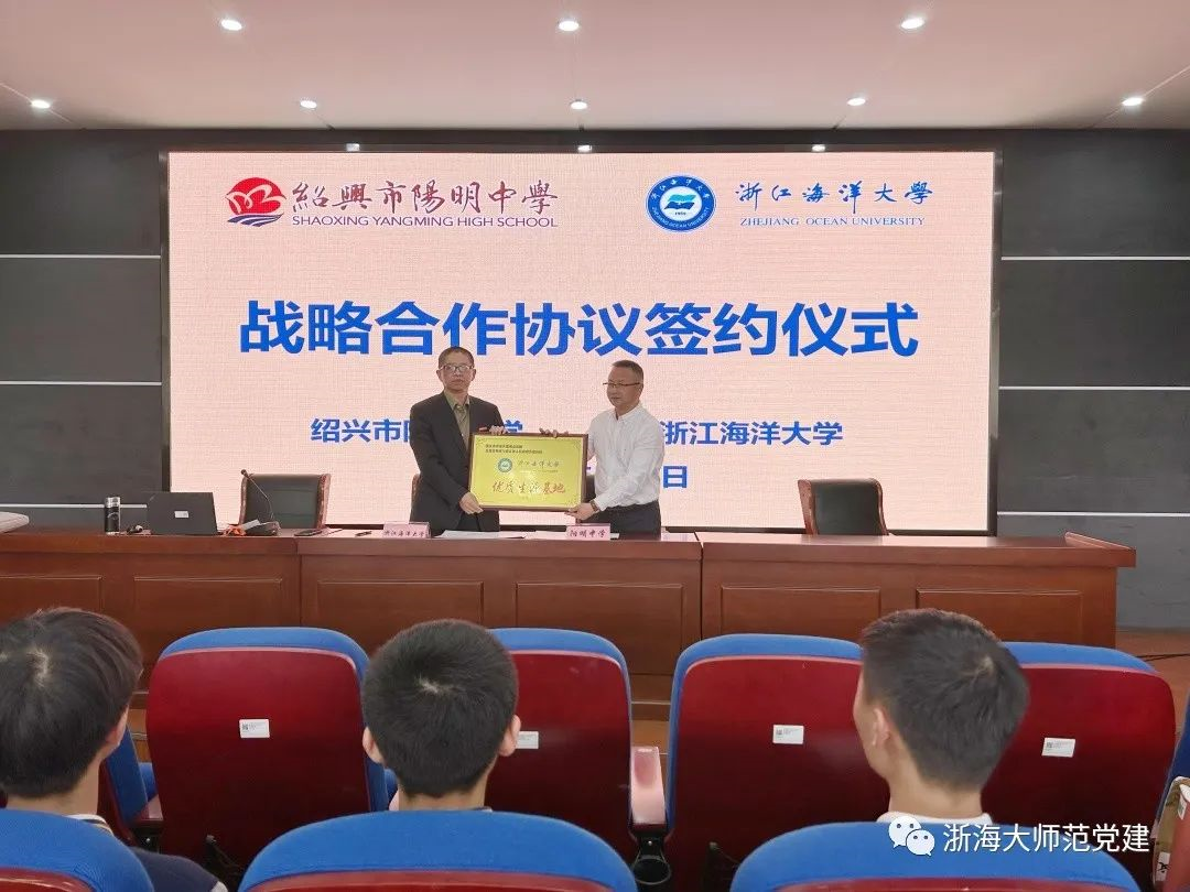 开讲前夕,绍兴市阳明中学领导同我校签署了永利集团官网优质生源基地合作协议书,举行了优质生源基地挂牌仪式。