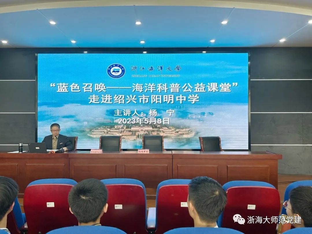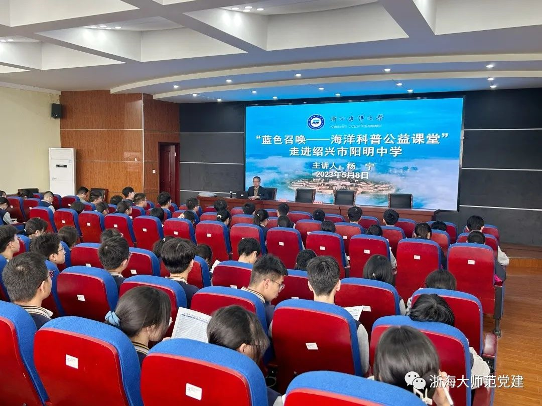 2023年5月8日下午,永利集团官网“蓝色召唤——海洋科普公益课堂”走进绍兴市阳明中学。yl9193永利集团党委书记、副院长杨宁担任主讲,该校100余名高中学生参与课堂。