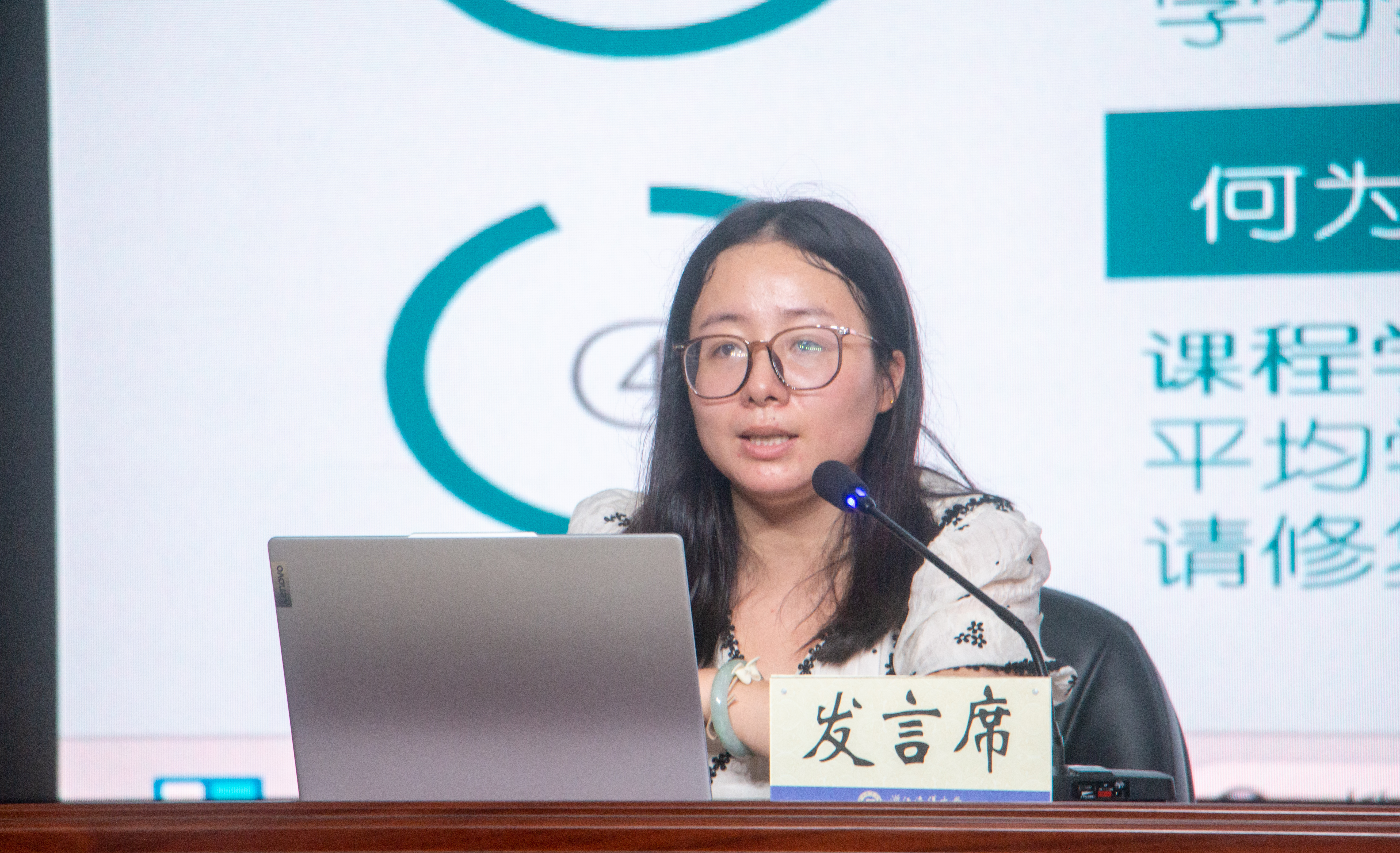 教务员李奕萱老师就学籍管理管理实施细则为同学们展开详细讲解,从学制与学分、考勤及纪律、课程考核与成绩记载、免修与免听课、选课要求、学业警示及进程调整、毕业结业要求等方面进行阐述。对于转专业与转学、休学、复学、退学等情况,李老师也做了具体的说明。