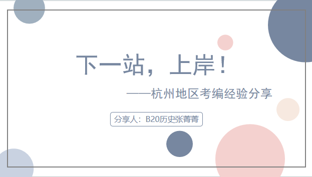 张菁菁学姐主要分享了杭州地区的考编经验。她强调考编是一场信息战,应重点把握信息资源,并以自身经历为样本,从掌握考情和笔试面试备考方法、汇总信息、了解自身招考优势、重视同辈学生交流和积极尝试等方面提出建设性建议,勉励同学们要坚持不懈,以努力和奋斗为制胜法宝。