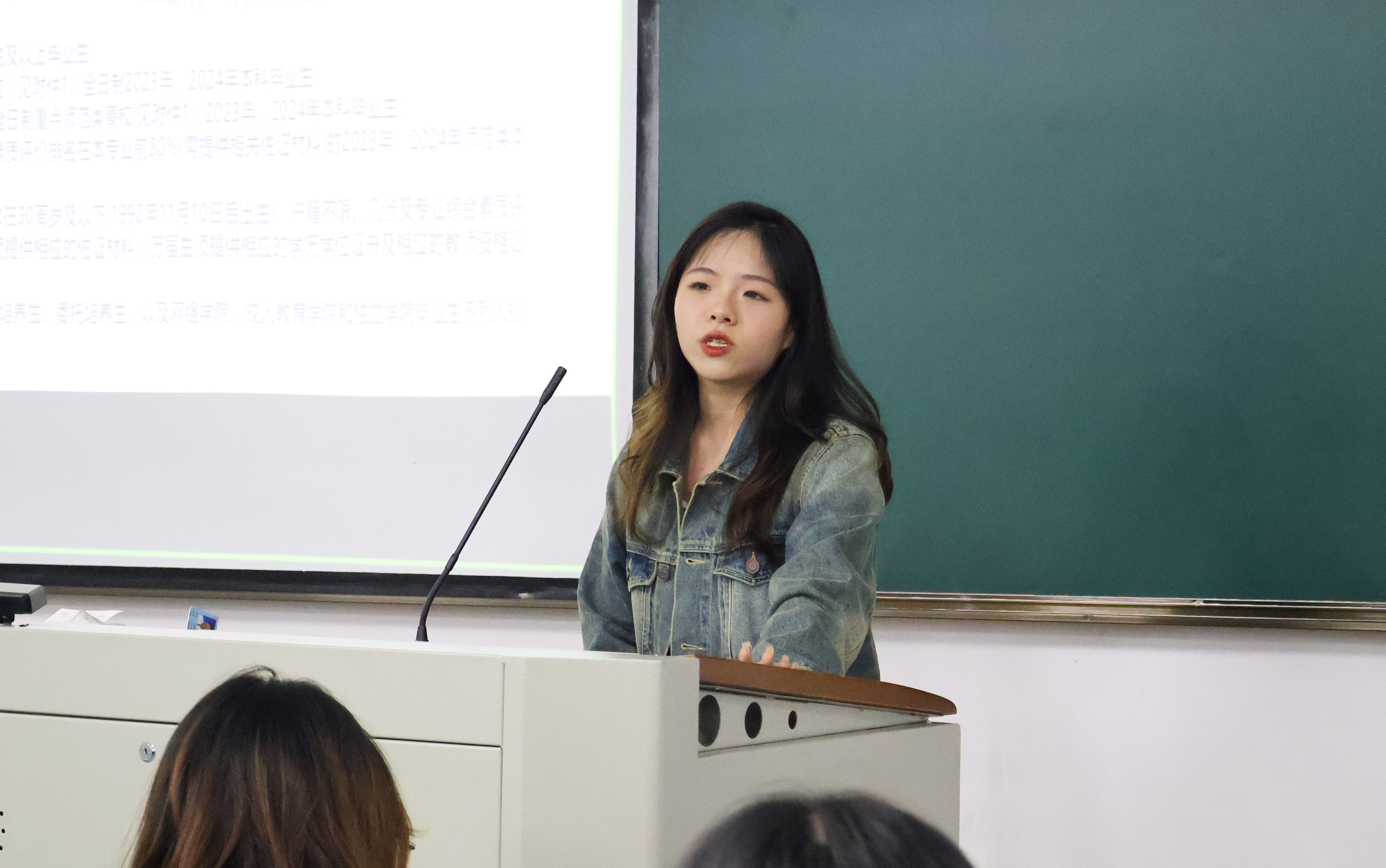 吴佳欣学姐首先点明,应事先做好进行考编、考研或是双管齐下的决定。随后,她围绕信息收集、笔试准备、面试准备和心态准备四方面内容展开讲述。吴学姐强调,在笔试准备中,要准备好笔试教材,掌握好学科知识;在面试准备中,应学会过课本、理教材、搭框架和练试讲;而在心态准备方面,则要坚定自信、认真备考。