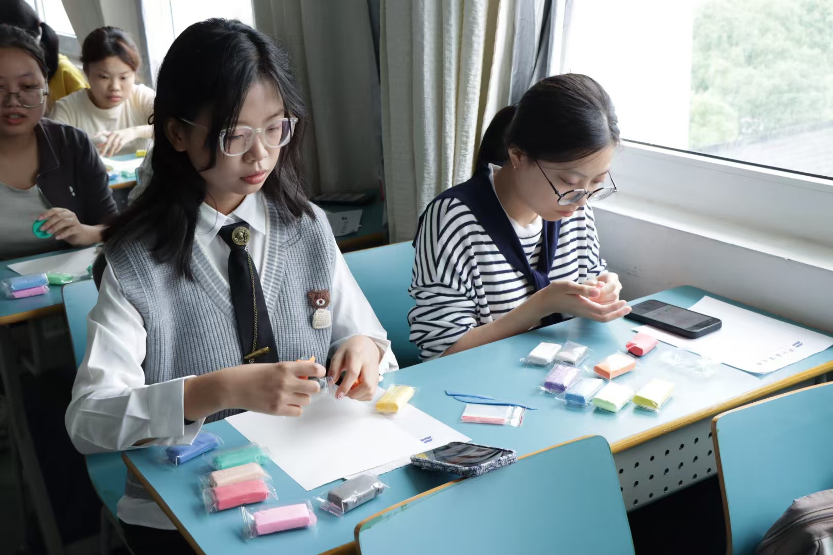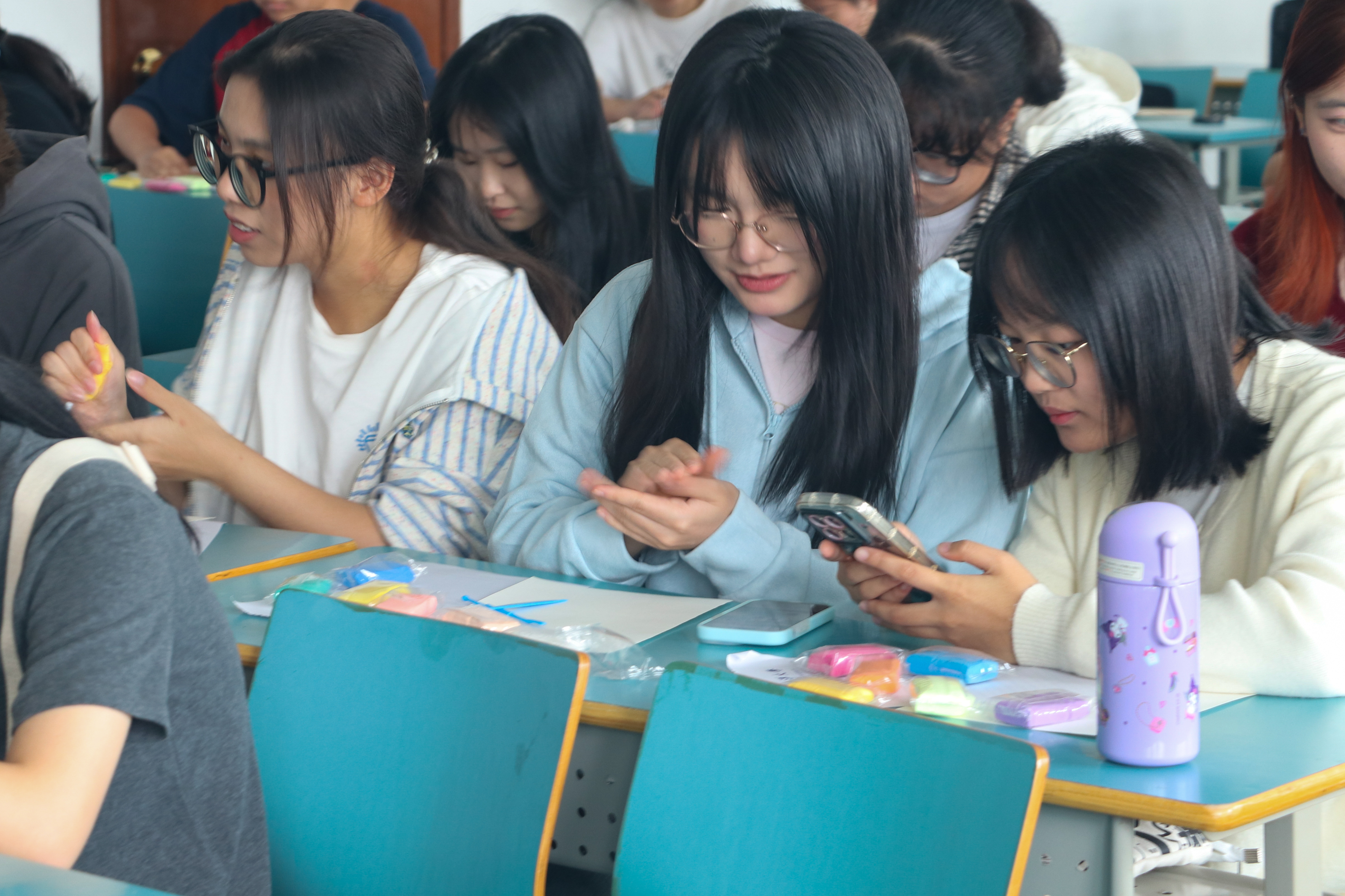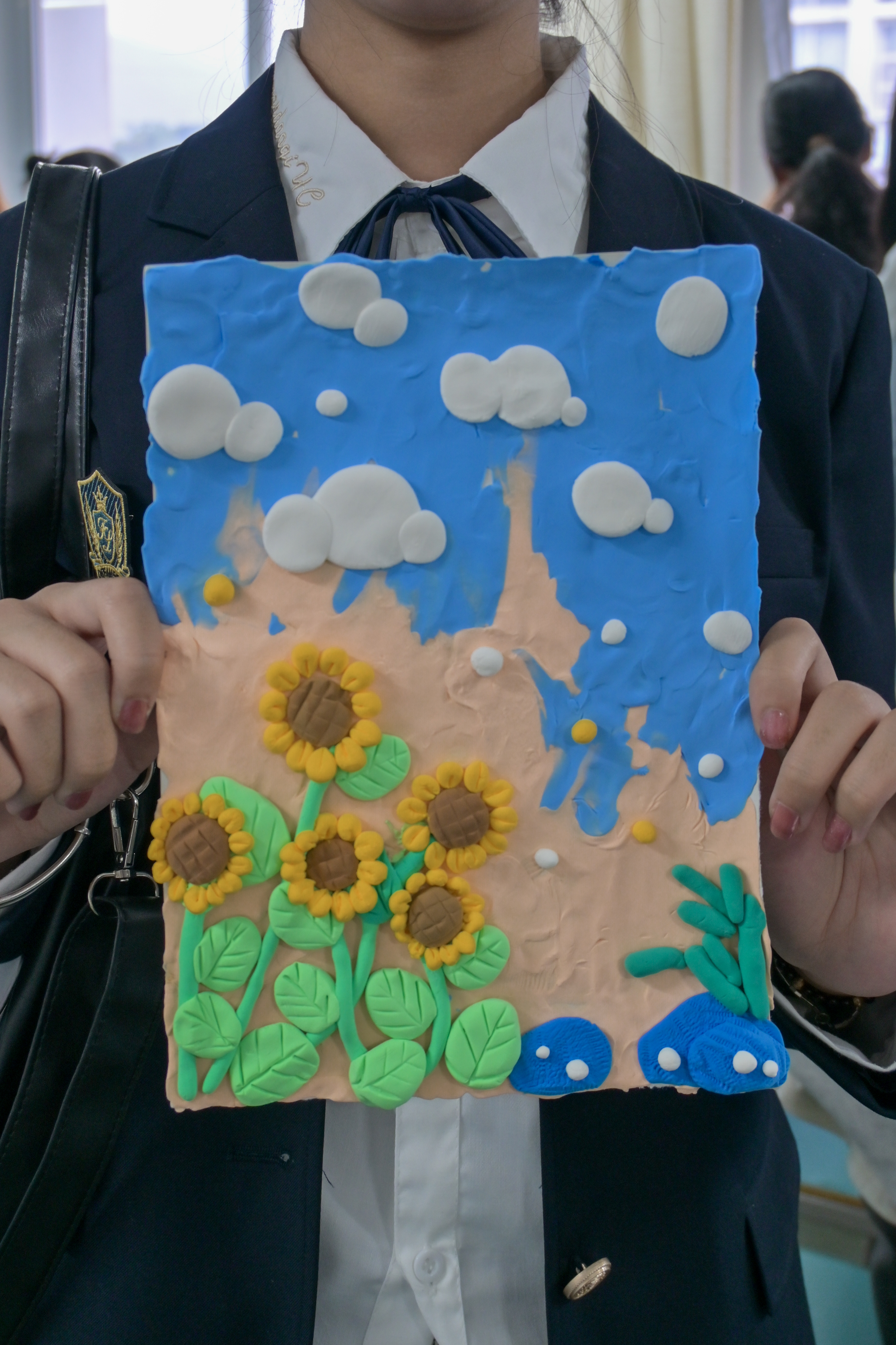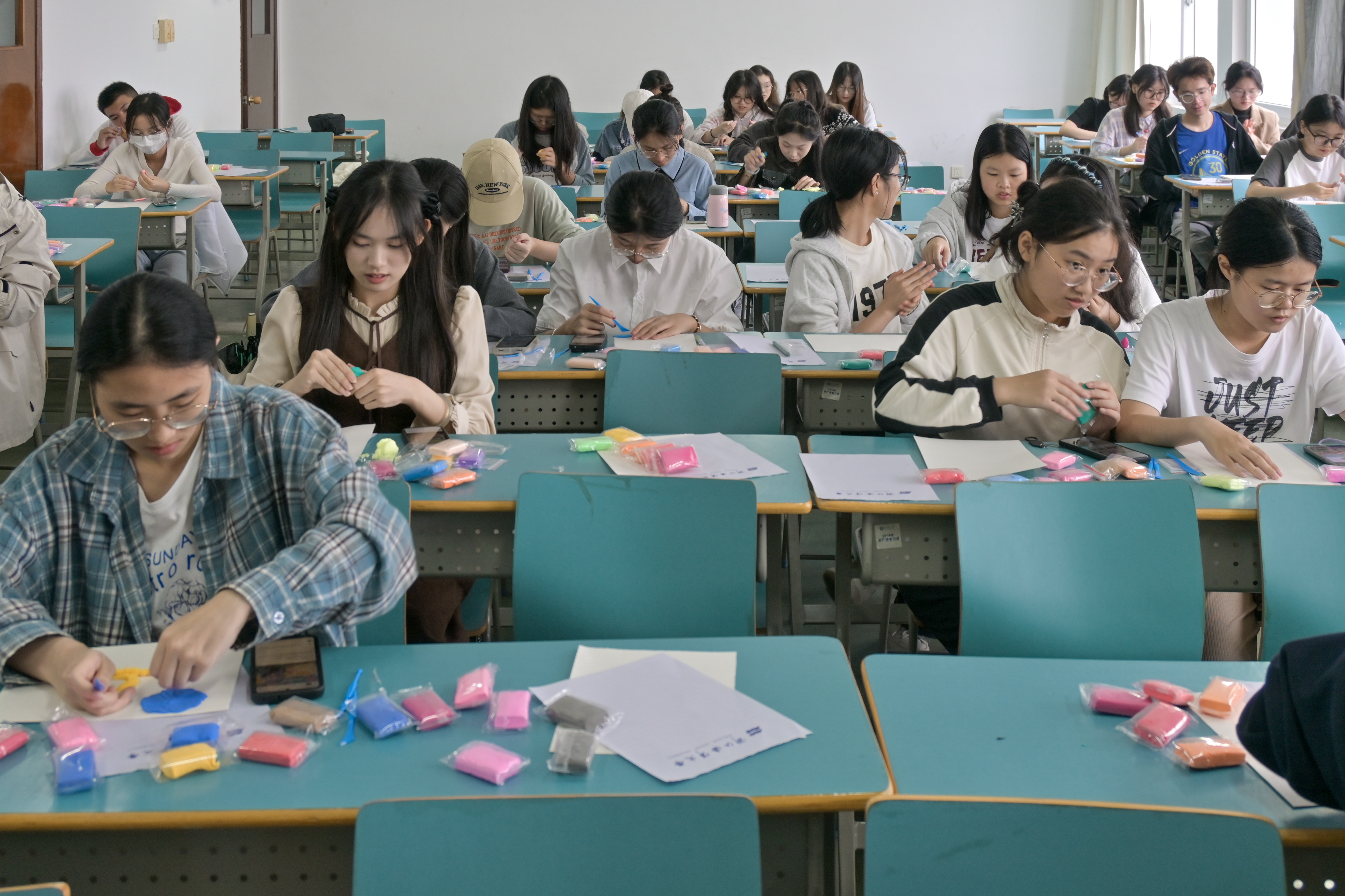 随后,同学们便迫不及待地投入到粘土创作之中了。他们满怀热情,用心对待,他们用双手尝试着将五颜六色的粘土揉搓、塑形,赋予作品独特的情感和故事。在经历了最初的手忙脚乱后,同学们逐渐能够得心应手,还会与其他同学一起相互分享、交流经验。最后,同学们都能够完成一份在自己心目中“完美”的作品,心满意足地写下本次活动的感悟,记录今日的美好。过程中,工作人员也都随时在岗,为同学们解答疑惑,提供帮助,为活动的顺利举行做出了不可磨灭的贡献!